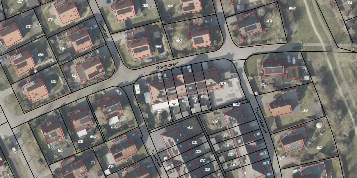 Het perceel waarop Robijndreef 9 staat heeft een oppervlakte van 157 m². Dit is een middelgroot perceel. De perceeloppervlakte wordt geregistreerd door het Kadaster. Gedetailleerde informatie over de maten van dit perceel kunt u vinden in het rapport Kadastrale kaart met maatvoering van Robijndreef 9.