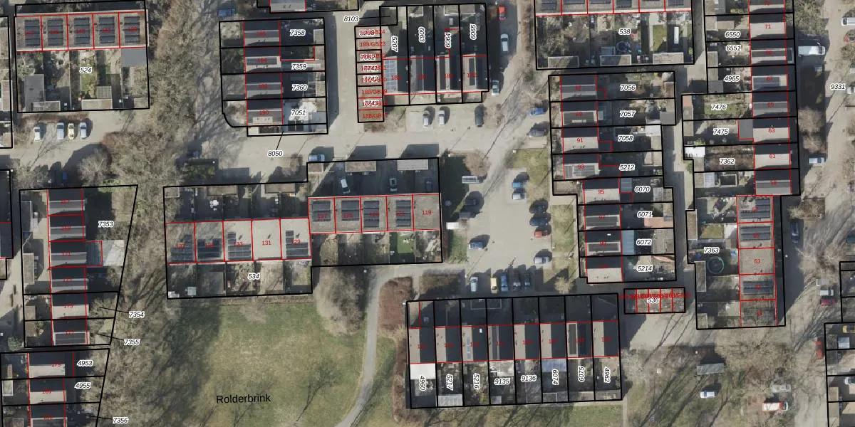 Het perceel waarop Rolderbrink 119 staat heeft een oppervlakte van 1636 m². Dit is een zeer groot perceel. De perceeloppervlakte wordt geregistreerd door het Kadaster. Gedetailleerde informatie over de maten van dit perceel kunt u vinden in het rapport Kadastrale kaart met maatvoering van Rolderbrink 119.