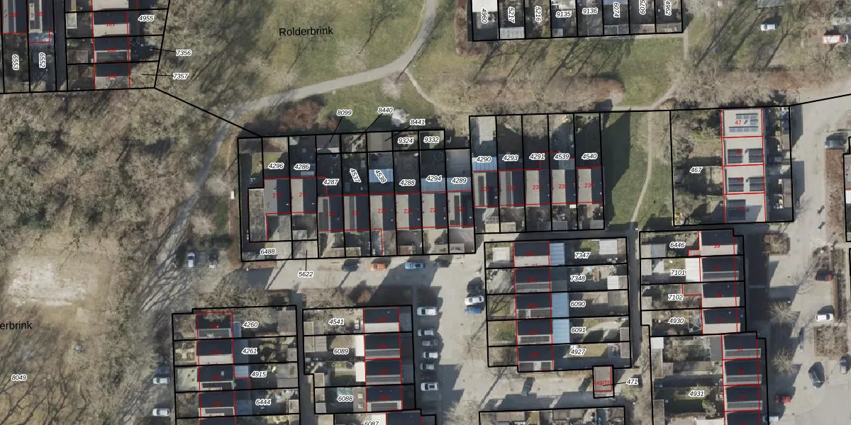 Gebruik de zoekbalk of klik op een perceel voor informatie over de adressen binnen dit perceel.