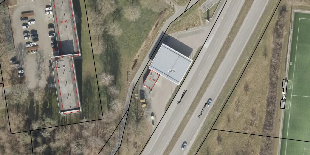 Het perceel waarop Rondweg 75 staat heeft een oppervlakte van 3035 m². Dit is een zeer groot perceel. De perceeloppervlakte wordt geregistreerd door het Kadaster. Gedetailleerde informatie over de maten van dit perceel kunt u vinden in het rapport Kadastrale kaart met maatvoering van Rondweg 75.