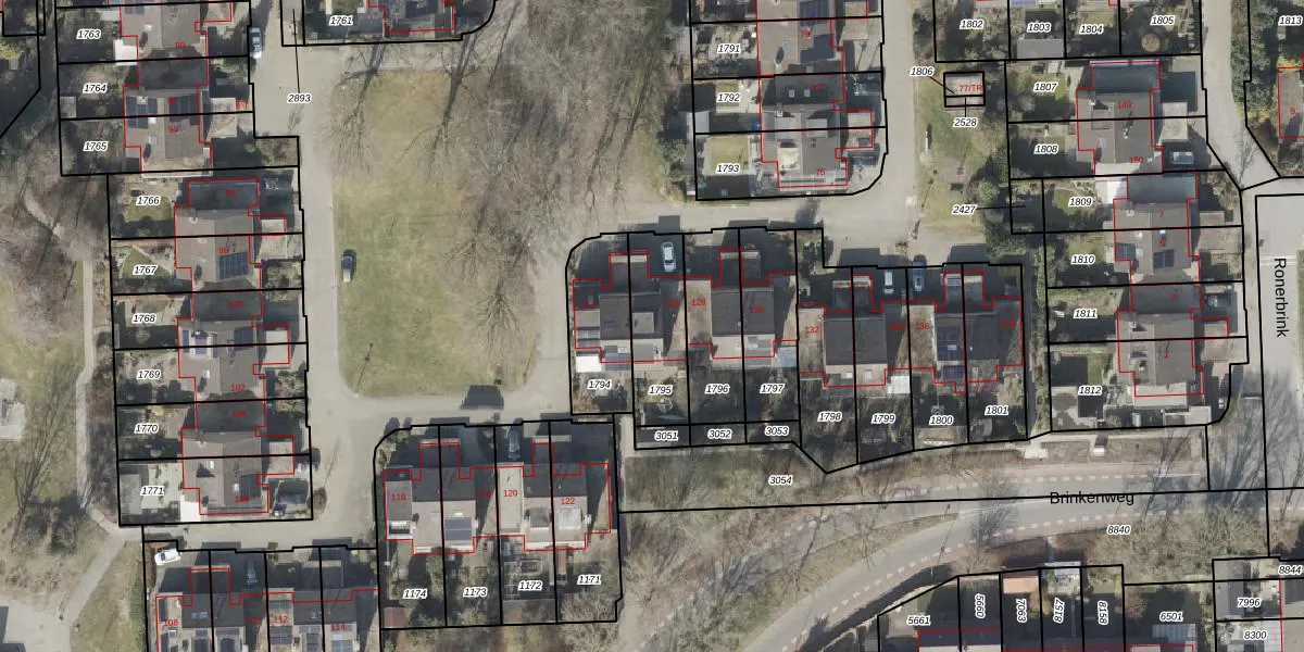 Het perceel waarop Ronerbrink 126 staat heeft een oppervlakte van 252 m². Dit is een middelgroot perceel. De perceeloppervlakte wordt geregistreerd door het Kadaster. Gedetailleerde informatie over de maten van dit perceel kunt u vinden in het rapport Kadastrale kaart met maatvoering van Ronerbrink 126.