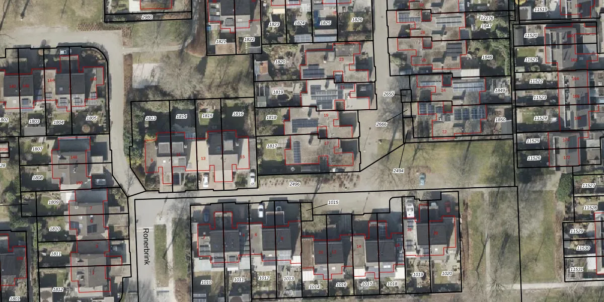 Het perceel waarop Ronerbrink 17 staat heeft een oppervlakte van 418 m². Dit is een groot perceel. De perceeloppervlakte wordt geregistreerd door het Kadaster. Gedetailleerde informatie over de maten van dit perceel kunt u vinden in het rapport Kadastrale kaart met maatvoering van Ronerbrink 17.