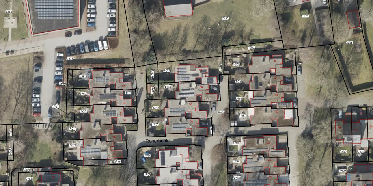 Het perceel waarop Ronerbrink 58 staat heeft een oppervlakte van 307 m². Dit is een groot perceel. De perceeloppervlakte wordt geregistreerd door het Kadaster. Gedetailleerde informatie over de maten van dit perceel kunt u vinden in het rapport Kadastrale kaart met maatvoering van Ronerbrink 58.