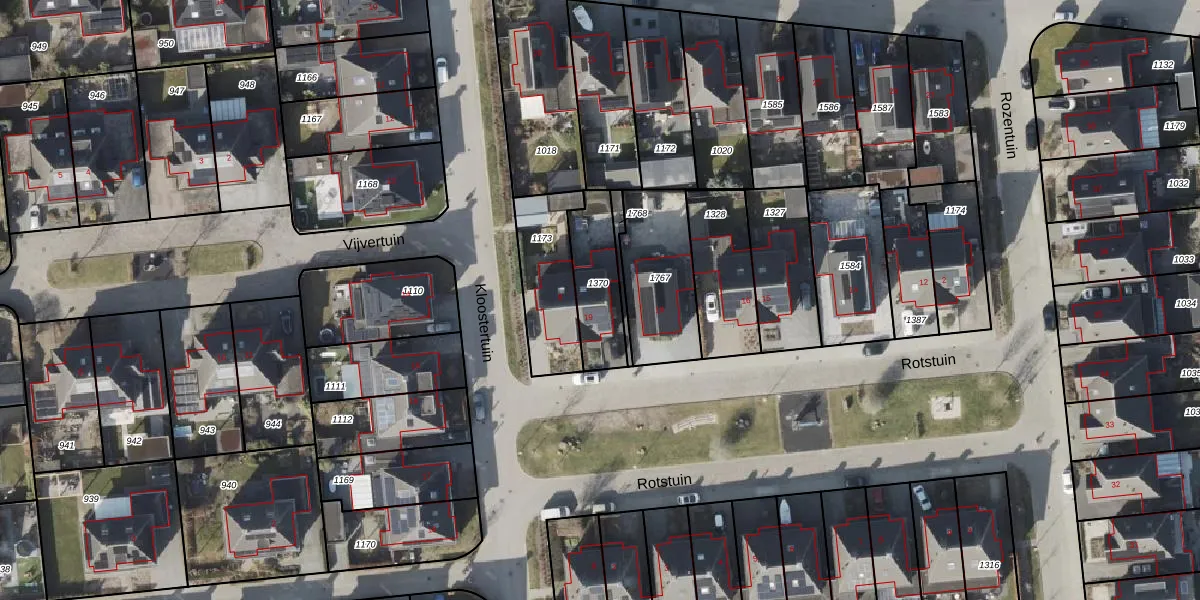 Het perceel waarop Rotstuin 19 staat heeft een oppervlakte van 214 m². Dit is een middelgroot perceel. De perceeloppervlakte wordt geregistreerd door het Kadaster. Gedetailleerde informatie over de maten van dit perceel kunt u vinden in het rapport Kadastrale kaart met maatvoering van Rotstuin 19.