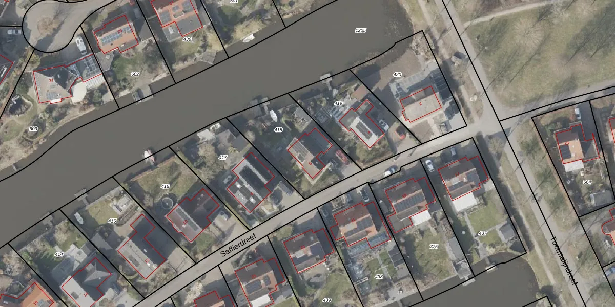Gebruik de zoekbalk of klik op een perceel voor informatie over de adressen binnen dit perceel.