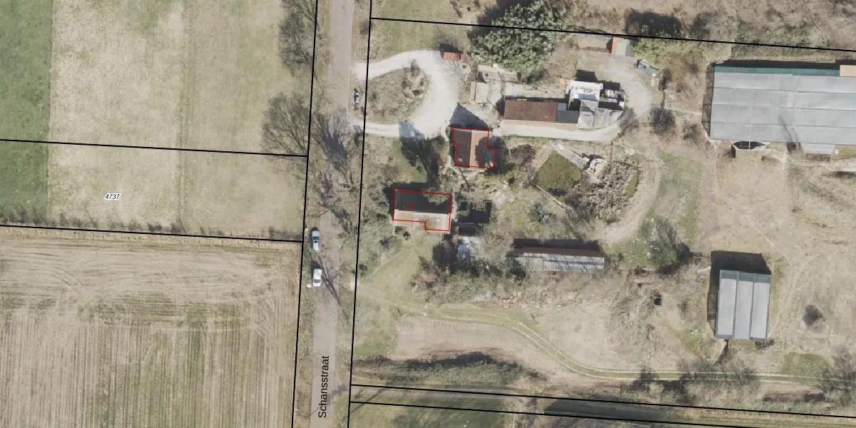 Het perceel waarop Schansstraat 50 staat heeft een oppervlakte van 8,4 ha. Dit is een zeer groot perceel. De perceeloppervlakte wordt geregistreerd door het Kadaster. Gedetailleerde informatie over de maten van dit perceel kunt u vinden in het rapport Kadastrale kaart met maatvoering van Schansstraat 50.