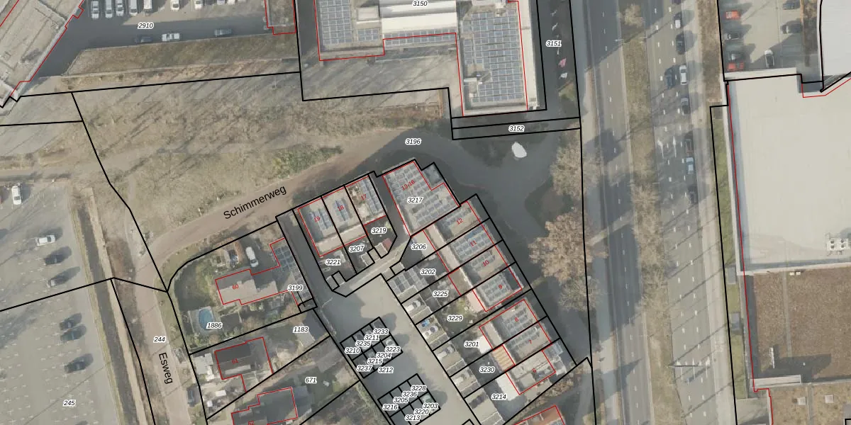 Schimmerweg 13 is gelegen op kadastraal perceel EMN00K3217. Deze kadastrale aanduiding is uniek en wordt gebruikt door het Kadaster om eigendomsrechten en andere zakelijke rechten vast te leggen. Het perceel maakt onderdeel uit van de kadastrale gemeente Emmen.