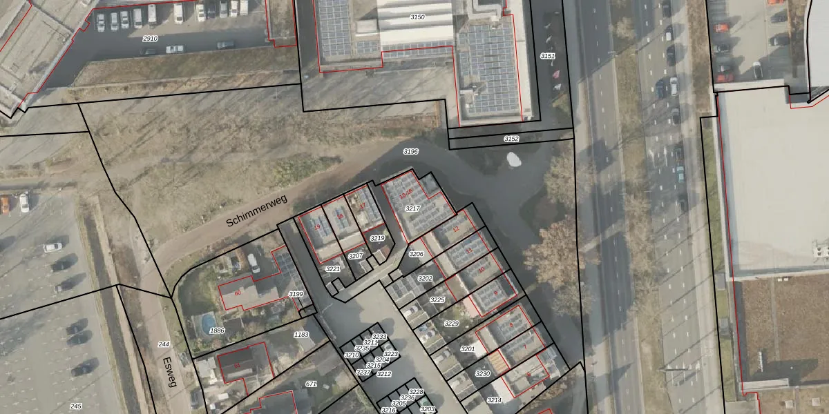 Schimmerweg 14 is gelegen op kadastraal perceel EMN00K3217. Deze kadastrale aanduiding is uniek en wordt gebruikt door het Kadaster om eigendomsrechten en andere zakelijke rechten vast te leggen. Het perceel maakt onderdeel uit van de kadastrale gemeente Emmen.