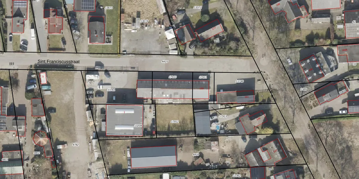 Sint Gerardusstraat 153 is gelegen op kadastraal perceel EMN00F17910. Deze kadastrale aanduiding is uniek en wordt gebruikt door het Kadaster om eigendomsrechten en andere zakelijke rechten vast te leggen. Het perceel maakt onderdeel uit van de kadastrale gemeente Emmen.