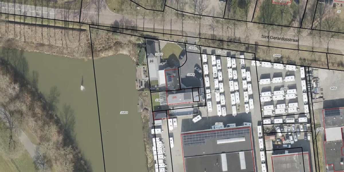 Sint Gerardusstraat 215 is gelegen op kadastraal perceel EMN00F15002. Deze kadastrale aanduiding is uniek en wordt gebruikt door het Kadaster om eigendomsrechten en andere zakelijke rechten vast te leggen. Het perceel maakt onderdeel uit van de kadastrale gemeente Emmen.