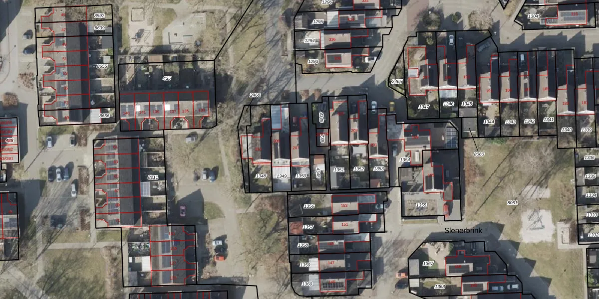 Gebruik de zoekbalk of klik op een perceel voor informatie over de adressen binnen dit perceel.