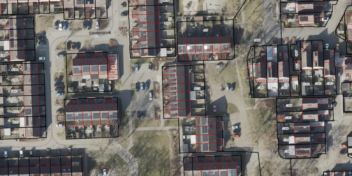 Slenerbrink 65 is gelegen op kadastraal perceel EMN00W8211. Deze kadastrale aanduiding is uniek en wordt gebruikt door het Kadaster om eigendomsrechten en andere zakelijke rechten vast te leggen. Het perceel maakt onderdeel uit van de kadastrale gemeente Emmen.