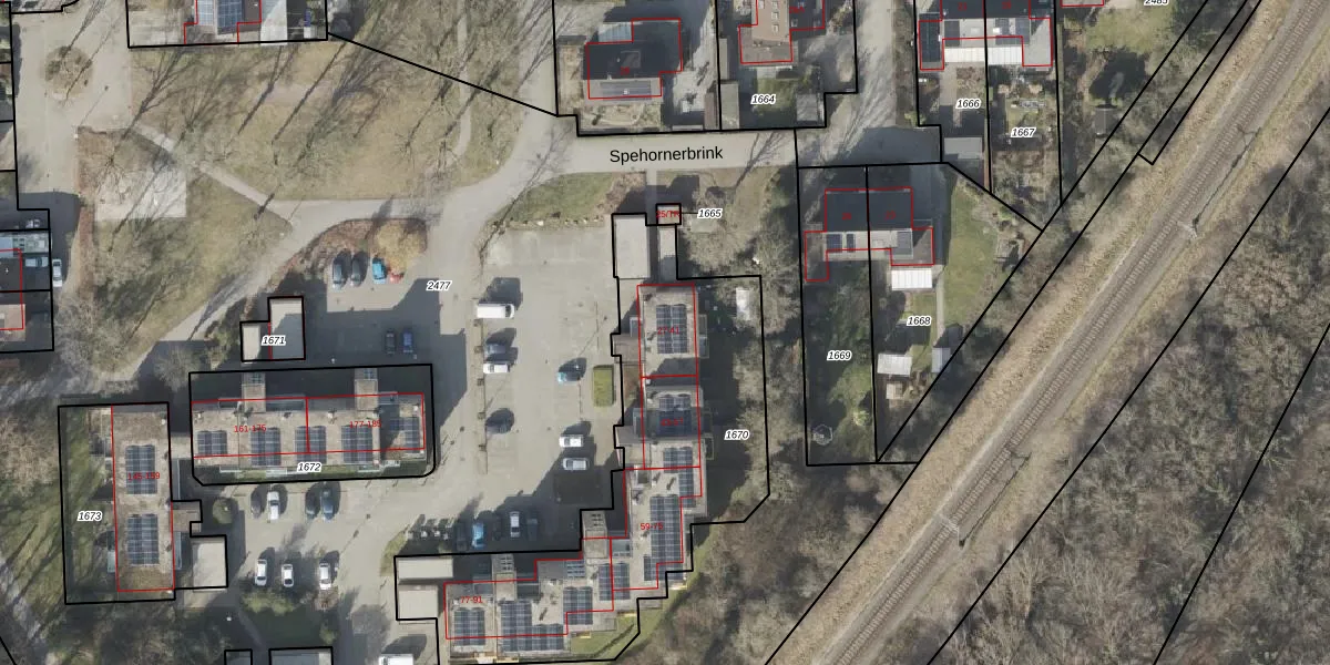 Spehornerbrink 33 is gelegen op kadastraal perceel EMN00W1670. Deze kadastrale aanduiding is uniek en wordt gebruikt door het Kadaster om eigendomsrechten en andere zakelijke rechten vast te leggen. Het perceel maakt onderdeel uit van de kadastrale gemeente Emmen.