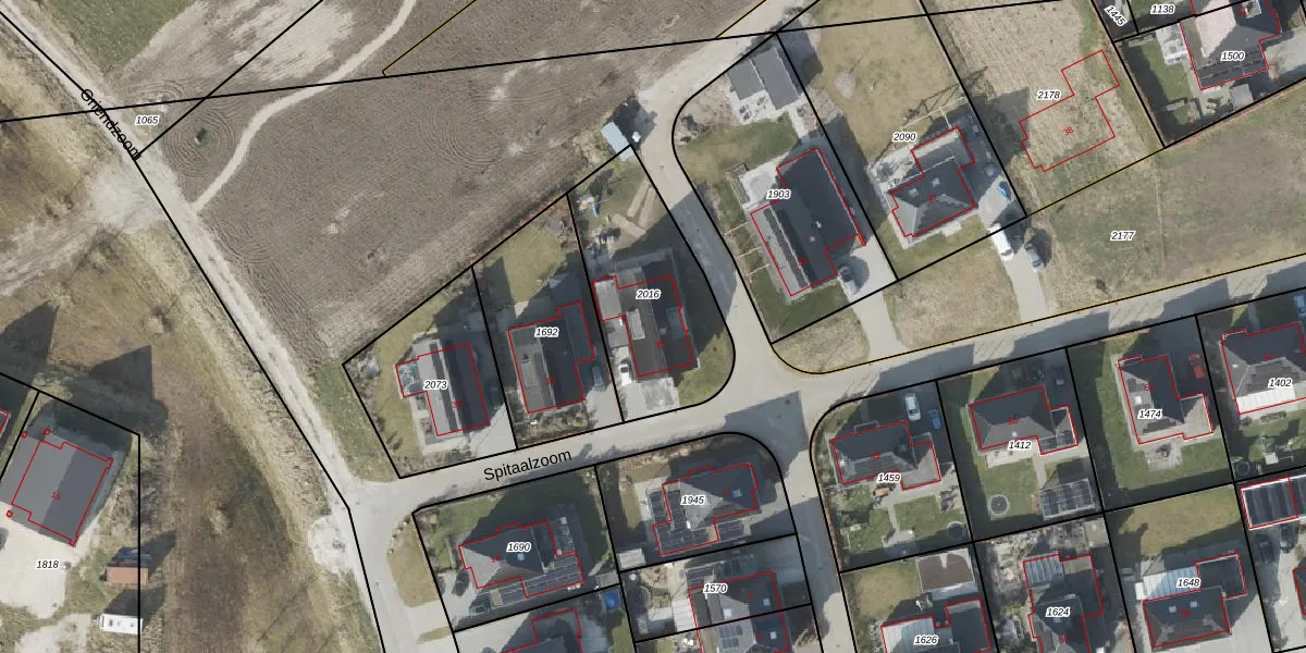 Het perceel waarop Spitaalzoom 35 staat heeft een oppervlakte van 633 m². Dit is een groot perceel. De perceeloppervlakte wordt geregistreerd door het Kadaster. Gedetailleerde informatie over de maten van dit perceel kunt u vinden in het rapport Kadastrale kaart met maatvoering van Spitaalzoom 35.