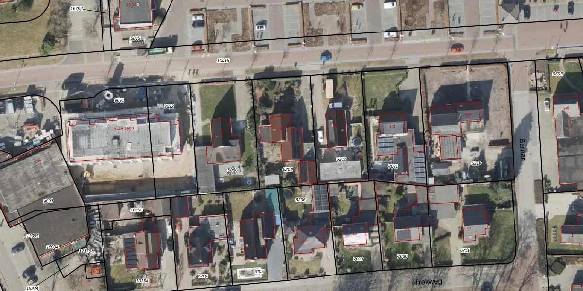 Gebruik de zoekbalk of klik op een perceel voor informatie over de adressen binnen dit perceel.
