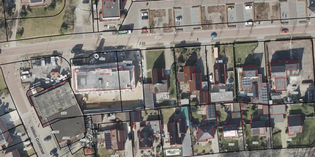 Gebruik de zoekbalk of klik op een perceel voor informatie over de adressen binnen dit perceel.