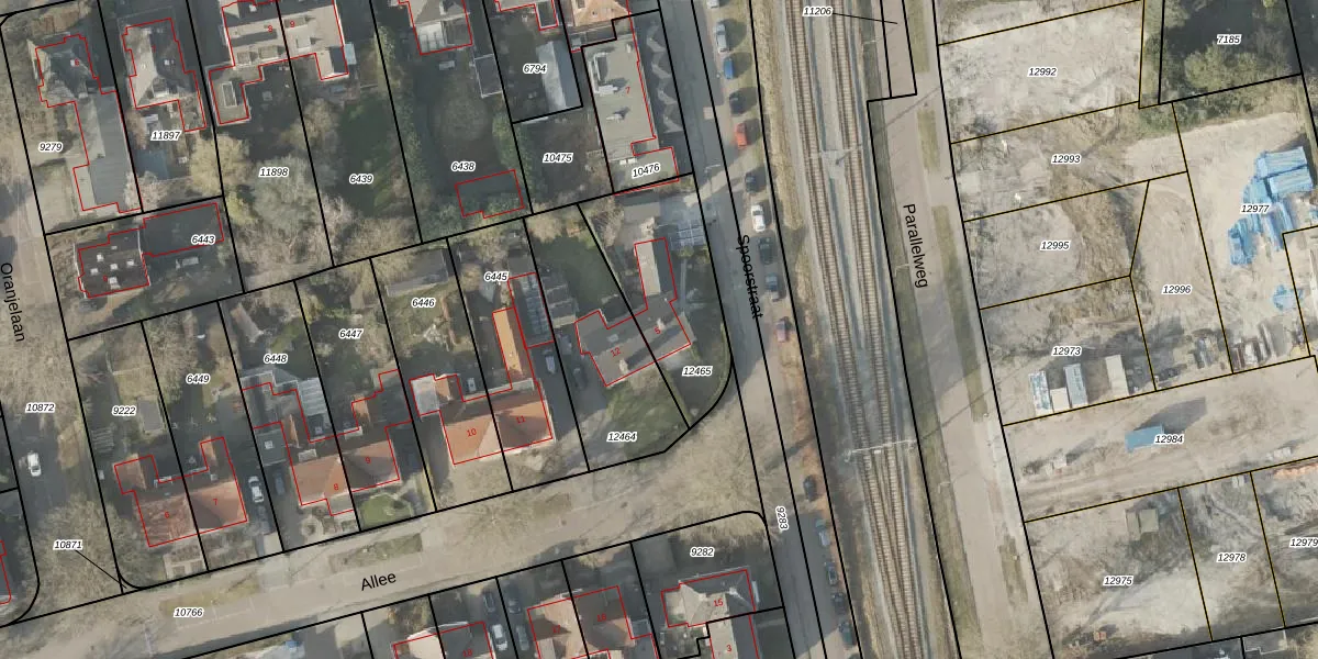 Het perceel waarop Spoorstraat 5 staat heeft een oppervlakte van 465 m². Dit is een groot perceel. De perceeloppervlakte wordt geregistreerd door het Kadaster. Gedetailleerde informatie over de maten van dit perceel kunt u vinden in het rapport Kadastrale kaart met maatvoering van Spoorstraat 5.