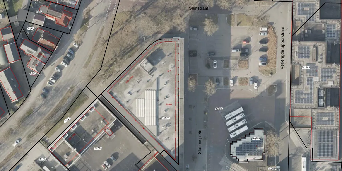 Het perceel waarop Stationsplein 5 staat heeft een oppervlakte van 1943 m². Dit is een zeer groot perceel. De perceeloppervlakte wordt geregistreerd door het Kadaster. Gedetailleerde informatie over de maten van dit perceel kunt u vinden in het rapport Kadastrale kaart met maatvoering van Stationsplein 5.