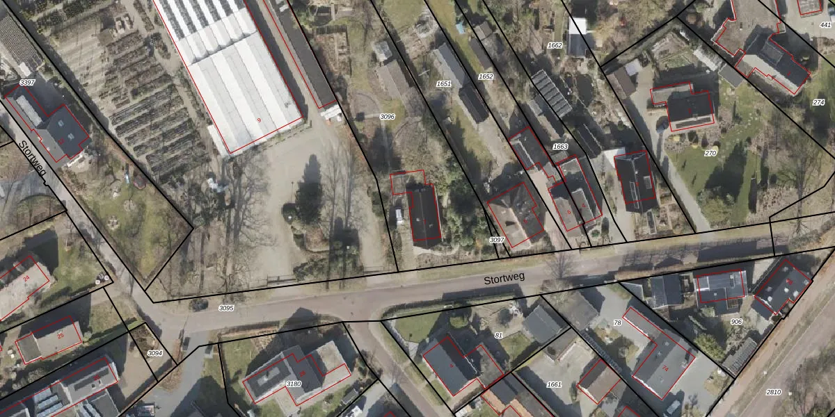 Stortweg 7 is gelegen op kadastraal perceel EMN00K3096. Deze kadastrale aanduiding is uniek en wordt gebruikt door het Kadaster om eigendomsrechten en andere zakelijke rechten vast te leggen. Het perceel maakt onderdeel uit van de kadastrale gemeente Emmen.