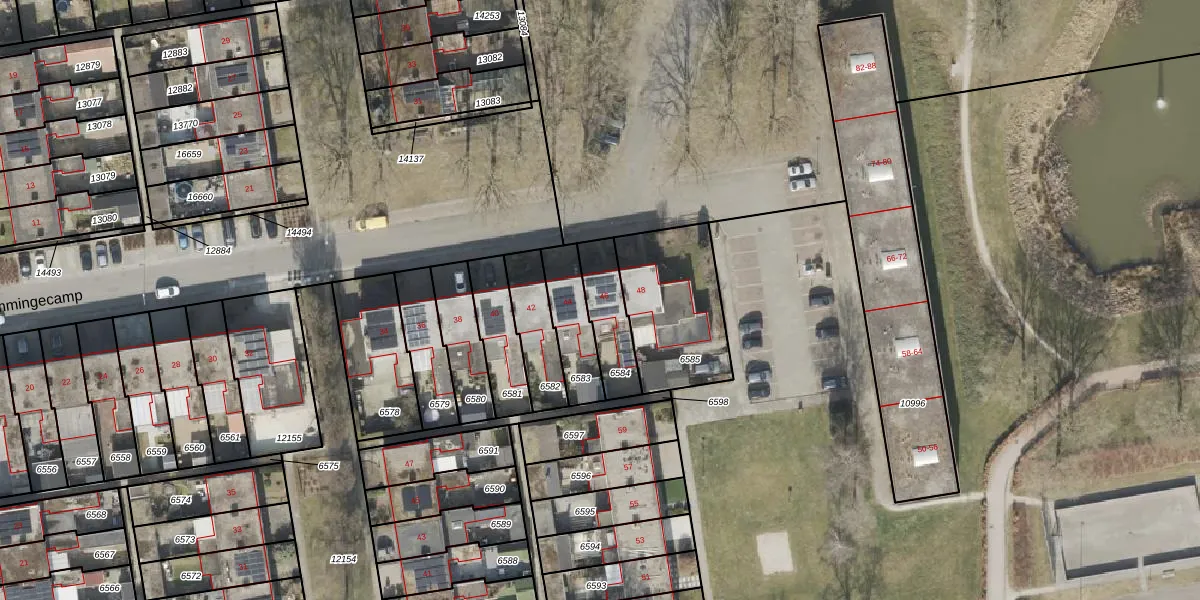 Tammingecamp 46 is gelegen op kadastraal perceel EMN00F6584. Deze kadastrale aanduiding is uniek en wordt gebruikt door het Kadaster om eigendomsrechten en andere zakelijke rechten vast te leggen. Het perceel maakt onderdeel uit van de kadastrale gemeente Emmen.