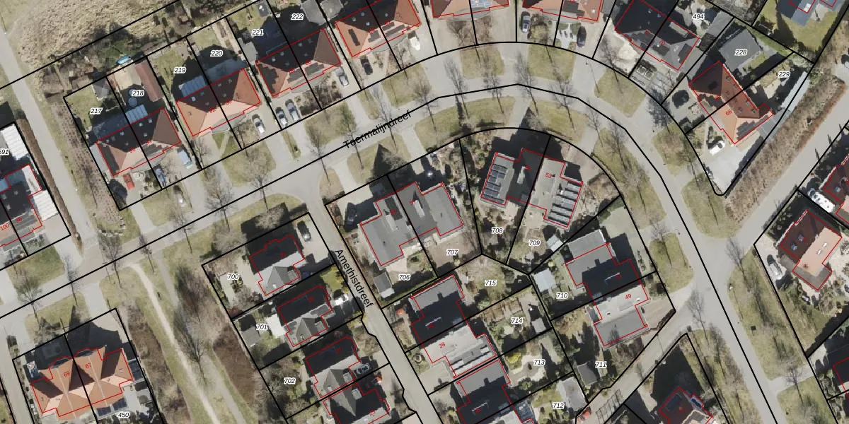 Het perceel waarop Toermalijndreef 57 staat heeft een oppervlakte van 416 m². Dit is een groot perceel. De perceeloppervlakte wordt geregistreerd door het Kadaster. Gedetailleerde informatie over de maten van dit perceel kunt u vinden in het rapport Kadastrale kaart met maatvoering van Toermalijndreef 57.