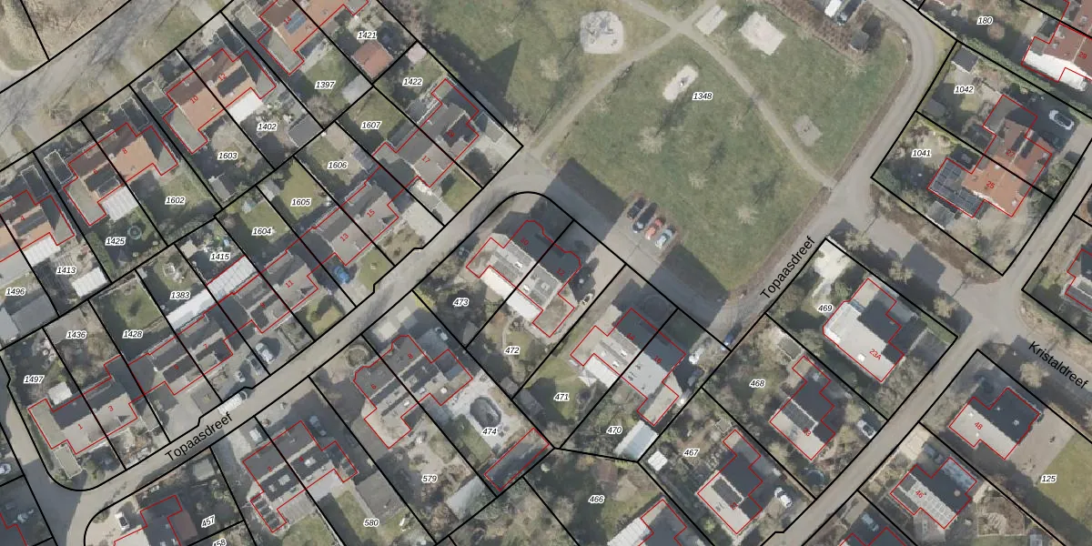 Het perceel waarop Topaasdreef 12 staat heeft een oppervlakte van 398 m². Dit is een groot perceel. De perceeloppervlakte wordt geregistreerd door het Kadaster. Gedetailleerde informatie over de maten van dit perceel kunt u vinden in het rapport Kadastrale kaart met maatvoering van Topaasdreef 12.