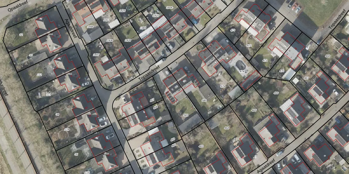 Het perceel waarop Topaasdreef 2 staat heeft een oppervlakte van 510 m². Dit is een groot perceel. De perceeloppervlakte wordt geregistreerd door het Kadaster. Gedetailleerde informatie over de maten van dit perceel kunt u vinden in het rapport Kadastrale kaart met maatvoering van Topaasdreef 2.