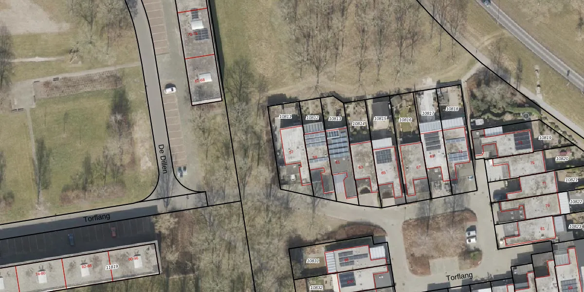 Het perceel waarop Torflang 57 staat heeft een oppervlakte van 333 m². Dit is een groot perceel. De perceeloppervlakte wordt geregistreerd door het Kadaster. Gedetailleerde informatie over de maten van dit perceel kunt u vinden in het rapport Kadastrale kaart met maatvoering van Torflang 57.