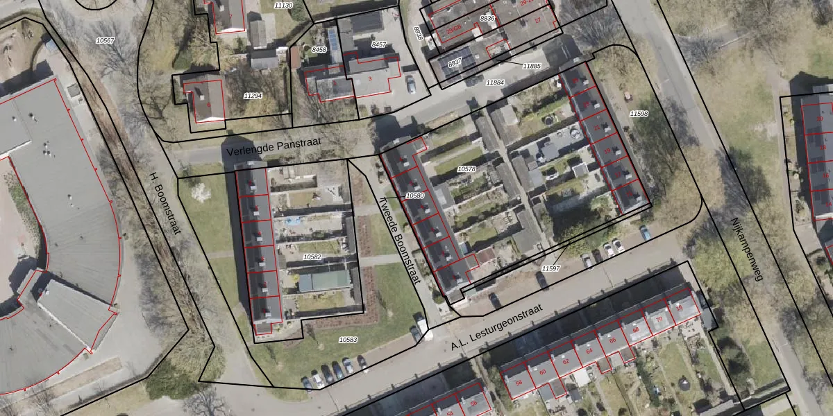 Het perceel waarop Tweede Boomstraat 4 staat heeft een oppervlakte van 2041 m². Dit is een zeer groot perceel. De perceeloppervlakte wordt geregistreerd door het Kadaster. Gedetailleerde informatie over de maten van dit perceel kunt u vinden in het rapport Kadastrale kaart met maatvoering van Tweede Boomstraat 4.