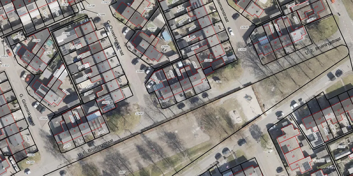 Het perceel waarop U. E. Bruiningstraat 12 staat heeft een oppervlakte van 128 m². Dit is een middelgroot perceel. De perceeloppervlakte wordt geregistreerd door het Kadaster. Gedetailleerde informatie over de maten van dit perceel kunt u vinden in het rapport Kadastrale kaart met maatvoering van U. E. Bruiningstraat 12.