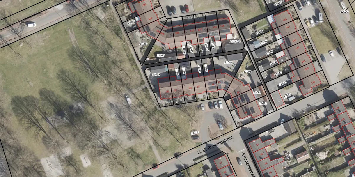 U. E. Bruiningstraat 31 is gelegen op kadastraal perceel EMN00C11098. Deze kadastrale aanduiding is uniek en wordt gebruikt door het Kadaster om eigendomsrechten en andere zakelijke rechten vast te leggen. Het perceel maakt onderdeel uit van de kadastrale gemeente Emmen.