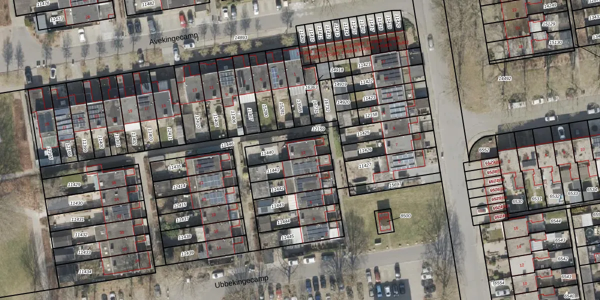 Gebruik de zoekbalk of klik op een perceel voor informatie over de adressen binnen dit perceel.