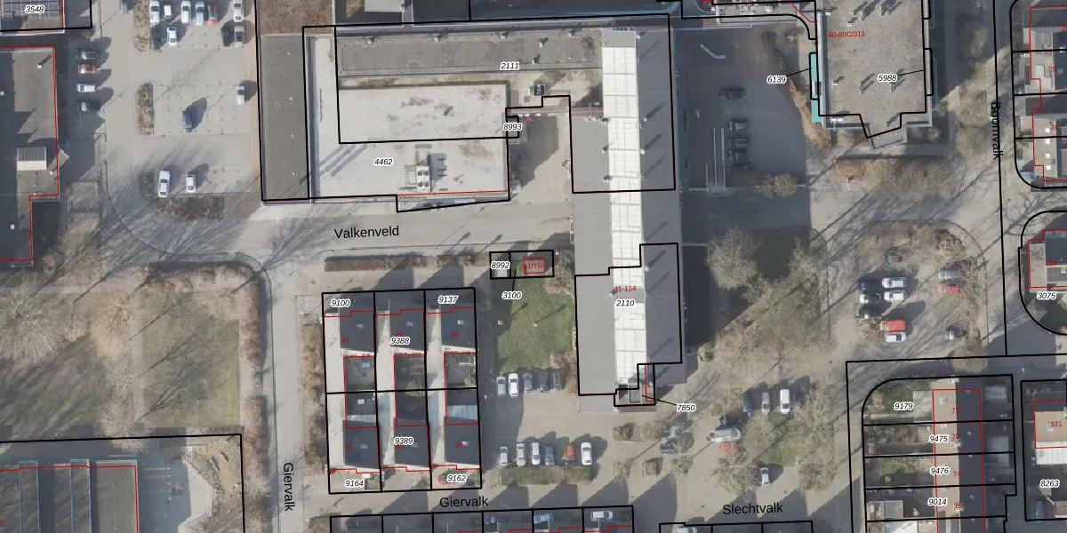 Het perceel waarop Valkenveld 61-TR staat heeft een oppervlakte van 40 m². Dit is een klein perceel. De perceeloppervlakte wordt geregistreerd door het Kadaster. Gedetailleerde informatie over de maten van dit perceel kunt u vinden in het rapport Kadastrale kaart met maatvoering van Valkenveld 61-TR.