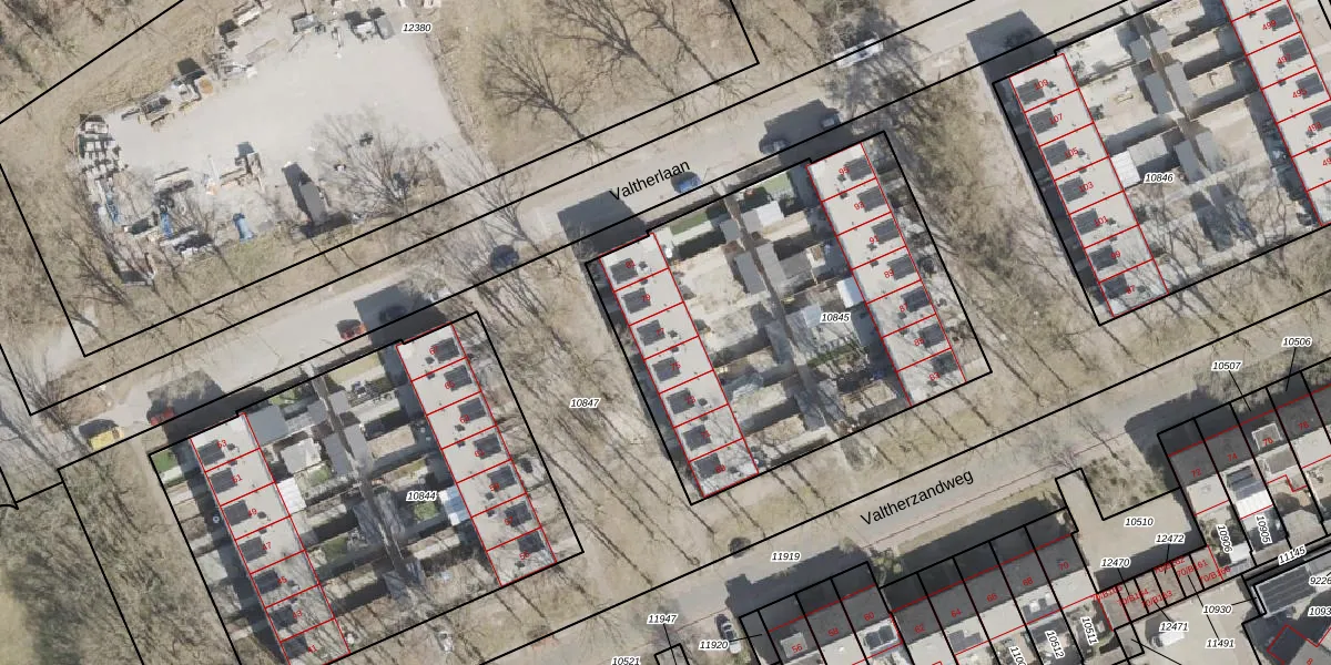 Het perceel waarop Valtherzandweg 77 staat heeft een oppervlakte van 1972 m². Dit is een zeer groot perceel. De perceeloppervlakte wordt geregistreerd door het Kadaster. Gedetailleerde informatie over de maten van dit perceel kunt u vinden in het rapport Kadastrale kaart met maatvoering van Valtherzandweg 77.