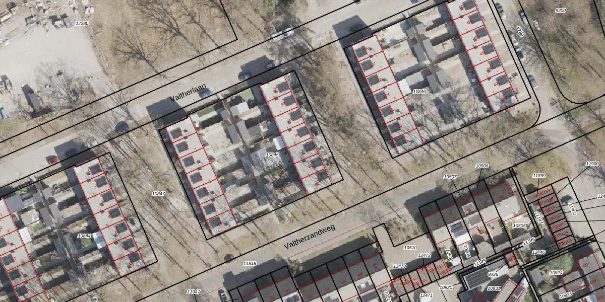 Het perceel waarop Valtherzandweg 87 staat heeft een oppervlakte van 1972 m². Dit is een zeer groot perceel. De perceeloppervlakte wordt geregistreerd door het Kadaster. Gedetailleerde informatie over de maten van dit perceel kunt u vinden in het rapport Kadastrale kaart met maatvoering van Valtherzandweg 87.
