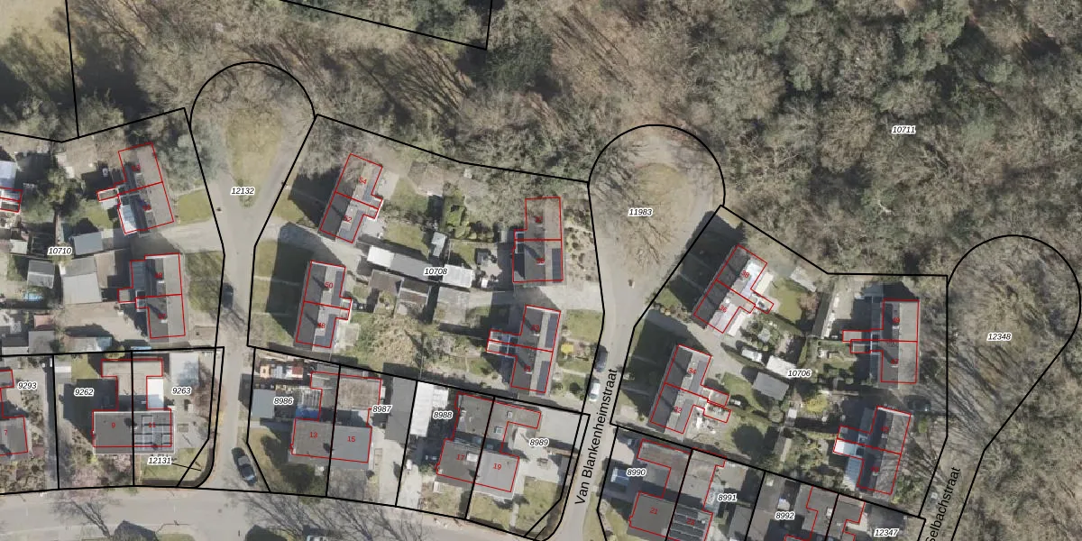 Het perceel waarop Van Blankenheimstraat 35 staat heeft een oppervlakte van 2590 m². Dit is een zeer groot perceel. De perceeloppervlakte wordt geregistreerd door het Kadaster. Gedetailleerde informatie over de maten van dit perceel kunt u vinden in het rapport Kadastrale kaart met maatvoering van Van Blankenheimstraat 35.