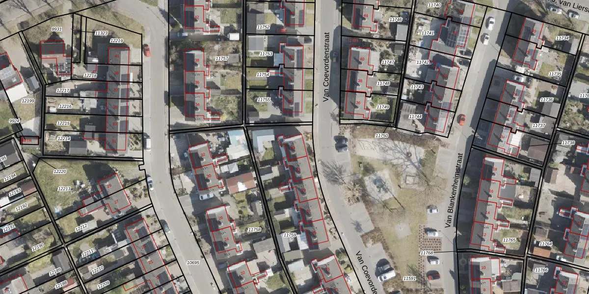Het perceel waarop Van Coevordenstraat 33 staat heeft een oppervlakte van 1811 m². Dit is een zeer groot perceel. De perceeloppervlakte wordt geregistreerd door het Kadaster. Gedetailleerde informatie over de maten van dit perceel kunt u vinden in het rapport Kadastrale kaart met maatvoering van Van Coevordenstraat 33.