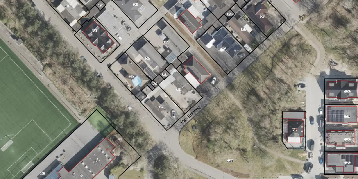 Het perceel waarop Van Eckweg 3 staat heeft een oppervlakte van 331 m². Dit is een groot perceel. De perceeloppervlakte wordt geregistreerd door het Kadaster. Gedetailleerde informatie over de maten van dit perceel kunt u vinden in het rapport Kadastrale kaart met maatvoering van Van Eckweg 3.