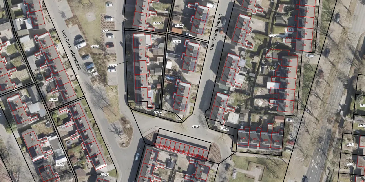 Het perceel waarop Van Selbachstraat 17 staat heeft een oppervlakte van 850 m². Dit is een groot perceel. De perceeloppervlakte wordt geregistreerd door het Kadaster. Gedetailleerde informatie over de maten van dit perceel kunt u vinden in het rapport Kadastrale kaart met maatvoering van Van Selbachstraat 17.