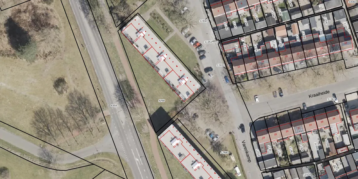 Het perceel waarop Varenkamp 103 staat heeft een oppervlakte van 1488 m². Dit is een zeer groot perceel. De perceeloppervlakte wordt geregistreerd door het Kadaster. Gedetailleerde informatie over de maten van dit perceel kunt u vinden in het rapport Kadastrale kaart met maatvoering van Varenkamp 103.