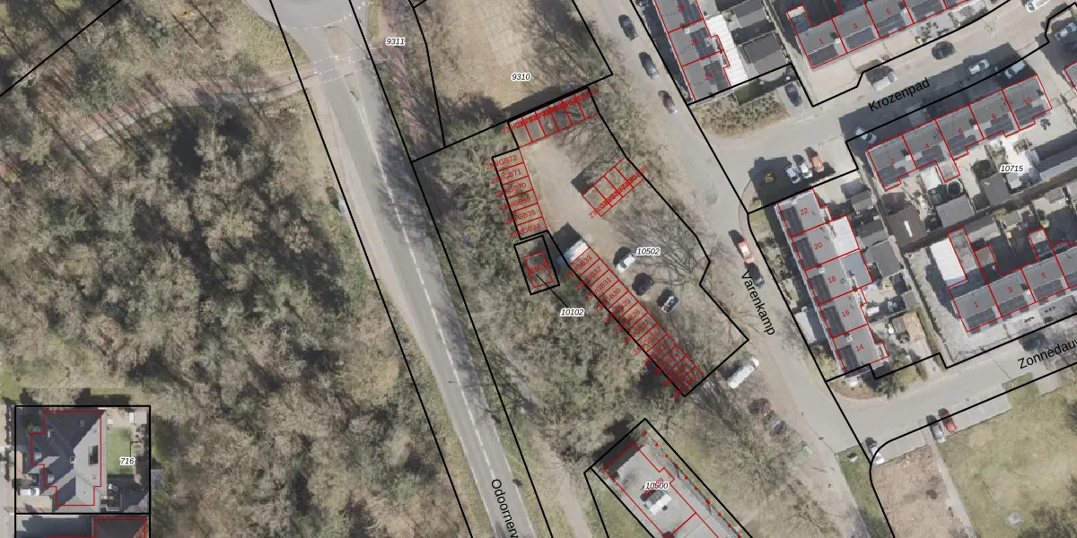 Varenkamp 239-TR is gelegen op kadastraal perceel EMN00C10102. Deze kadastrale aanduiding is uniek en wordt gebruikt door het Kadaster om eigendomsrechten en andere zakelijke rechten vast te leggen. Het perceel maakt onderdeel uit van de kadastrale gemeente Emmen.