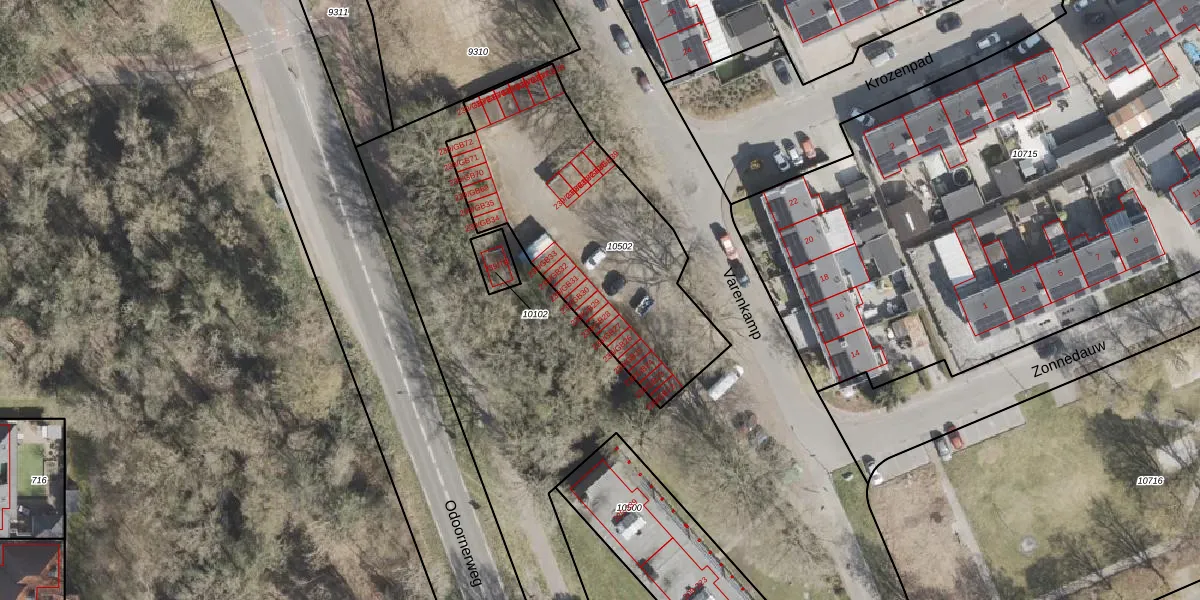 Varenkamp 239-GB29 is gelegen op kadastraal perceel EMN00C10502. Deze kadastrale aanduiding is uniek en wordt gebruikt door het Kadaster om eigendomsrechten en andere zakelijke rechten vast te leggen. Het perceel maakt onderdeel uit van de kadastrale gemeente Emmen.