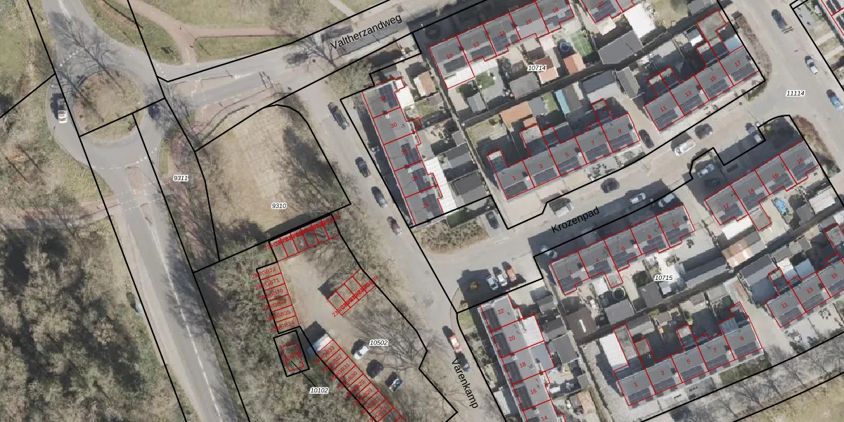 Het perceel waarop Varenkamp 24 staat heeft een oppervlakte van 4109 m². Dit is een zeer groot perceel. De perceeloppervlakte wordt geregistreerd door het Kadaster. Gedetailleerde informatie over de maten van dit perceel kunt u vinden in het rapport Kadastrale kaart met maatvoering van Varenkamp 24.
