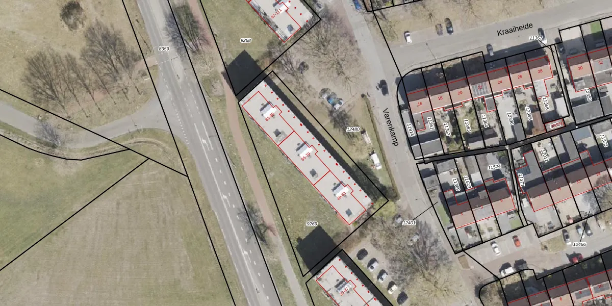 Het perceel waarop Varenkamp 73 staat heeft een oppervlakte van 1489 m². Dit is een zeer groot perceel. De perceeloppervlakte wordt geregistreerd door het Kadaster. Gedetailleerde informatie over de maten van dit perceel kunt u vinden in het rapport Kadastrale kaart met maatvoering van Varenkamp 73.