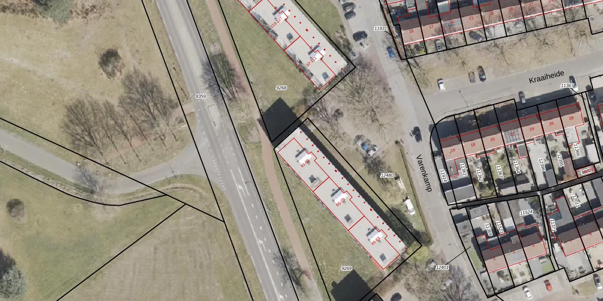 Varenkamp 93 is gelegen op kadastraal perceel EMN00C9269. Deze kadastrale aanduiding is uniek en wordt gebruikt door het Kadaster om eigendomsrechten en andere zakelijke rechten vast te leggen. Het perceel maakt onderdeel uit van de kadastrale gemeente Emmen.