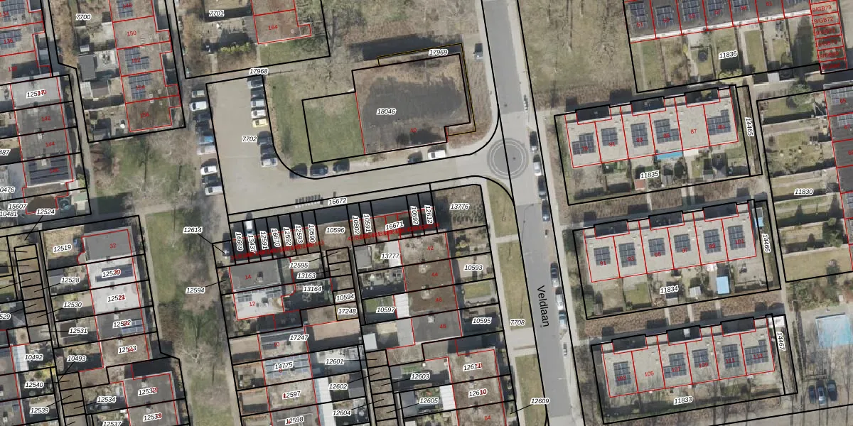 Veldlaan 42-B136 is gelegen op kadastraal perceel EMN00F12612. Deze kadastrale aanduiding is uniek en wordt gebruikt door het Kadaster om eigendomsrechten en andere zakelijke rechten vast te leggen. Het perceel maakt onderdeel uit van de kadastrale gemeente Emmen.