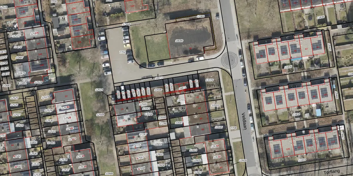 Veldlaan 42-B140 is gelegen op kadastraal perceel EMN00F16671. Deze kadastrale aanduiding is uniek en wordt gebruikt door het Kadaster om eigendomsrechten en andere zakelijke rechten vast te leggen. Het perceel maakt onderdeel uit van de kadastrale gemeente Emmen.
