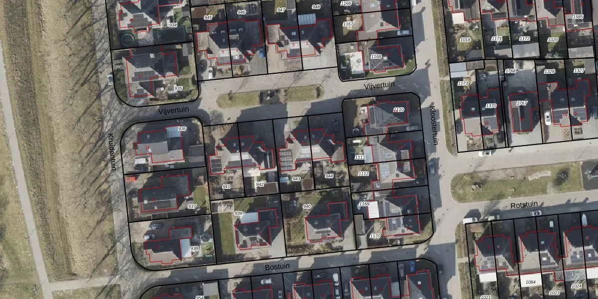 Het perceel waarop Vijvertuin 10 staat heeft een oppervlakte van 294 m². Dit is een middelgroot perceel. De perceeloppervlakte wordt geregistreerd door het Kadaster. Gedetailleerde informatie over de maten van dit perceel kunt u vinden in het rapport Kadastrale kaart met maatvoering van Vijvertuin 10.