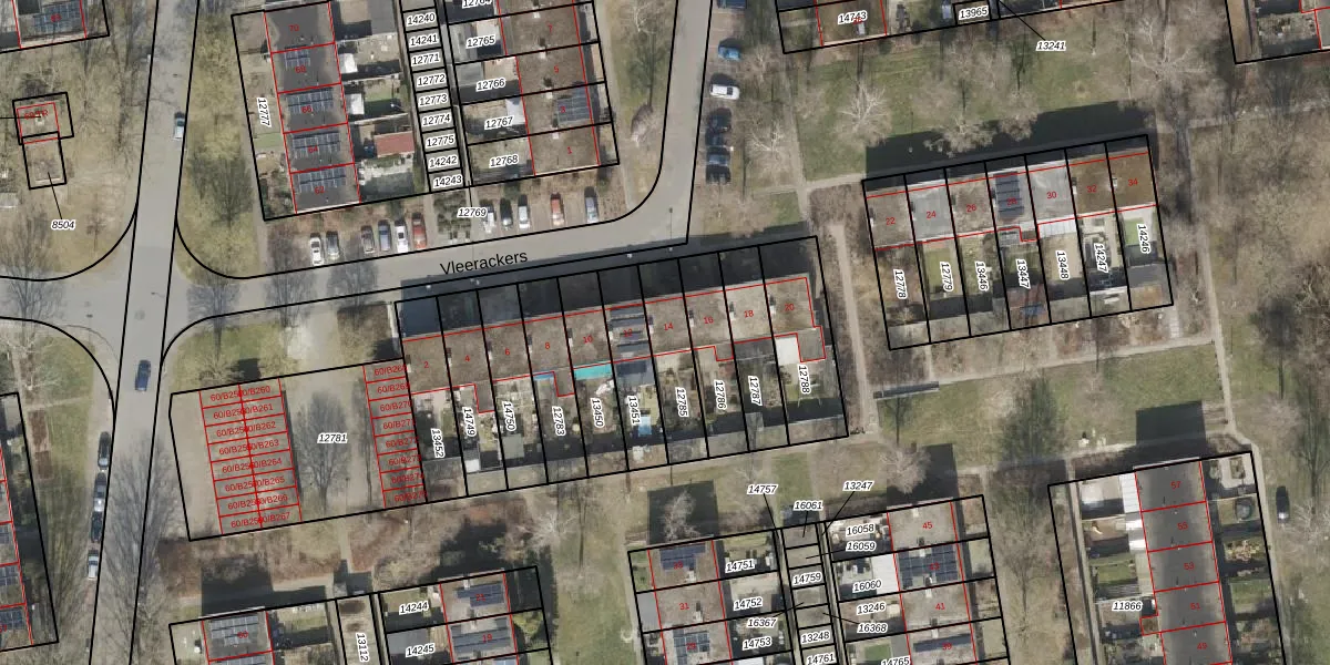 Gebruik de zoekbalk of klik op een perceel voor informatie over de adressen binnen dit perceel.