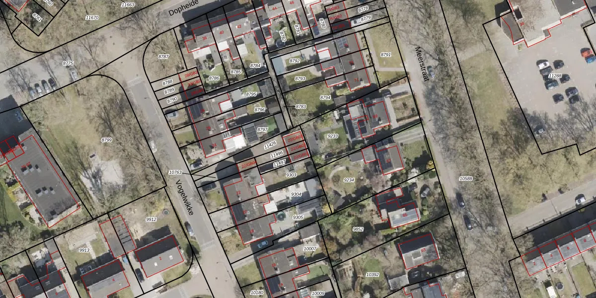 Gebruik de zoekbalk of klik op een perceel voor informatie over de adressen binnen dit perceel.